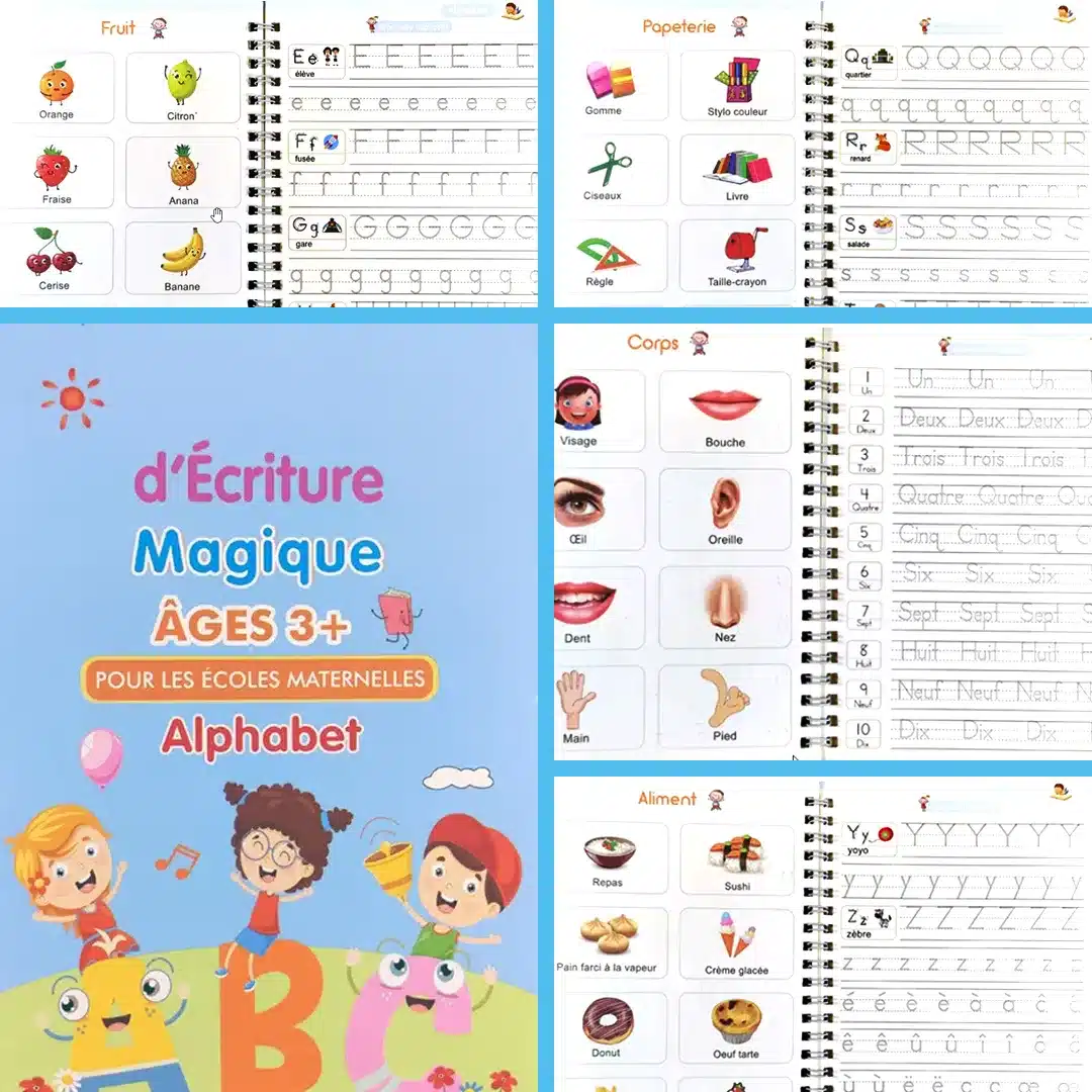Notre Cahier Magique Réutilisable transforme l’apprentissage en un jeu. Avec son encre qui disparaît en 10 minutes, l’enfant peut s’entraîner sans pression et recommencer autant de fois qu’il le souhaite.