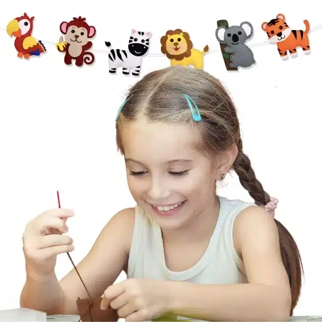 C’est très simple : votre enfant choisit une forme d’animal en feutrine, prend le fil et l’aiguille fournis, puis commence à assembler les deux parties grâce aux trous déjà pré-perforés.
