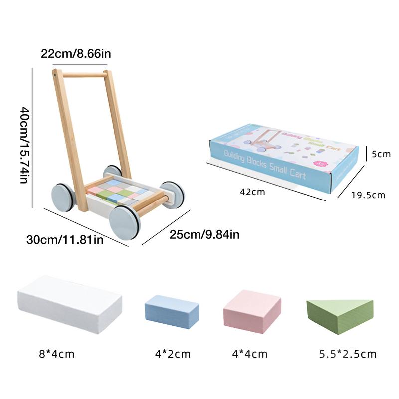 Pousseur Chariot avec Cubes de Construction Pastel