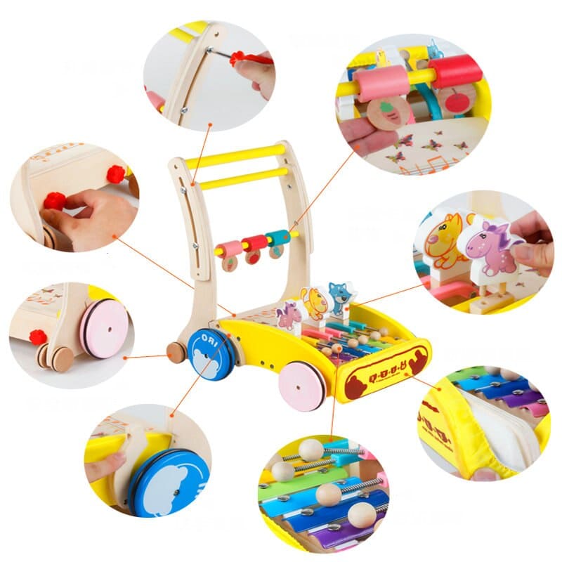 Le Pousseur Trotteur Musical est équipé d’un ourson et d’un xylophone qui joue une mélodie entraînante lorsque votre enfant avance avec le chariot. Cette fonctionnalité ludique motive votre enfant à se déplacer tout en l’amusant et en éveillant son intérêt pour la musique.